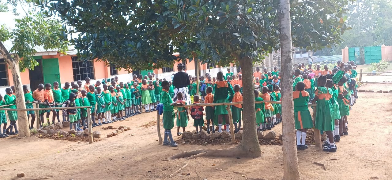 Die Kinder unserer Green Butterfly-Academy in Ugunja beginnen den Schultag wie immer gemeinsam auf dem Schulhof mit einem Gedicht oder Lied.