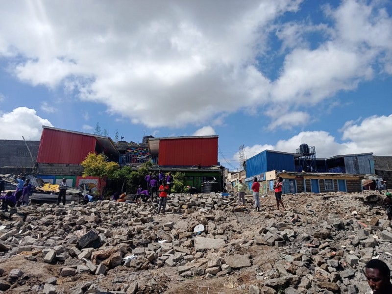 Mit Entsetzen musste unser Nairobi-Team beobachten, wie unerwartet die Bagger kamen und einen Teil unserer Schulinfrastrutur abrissen. Begründet wurde dies damit, dass die Behörden aufgrund der zahlreichen Überschwemmungen beschlossen hätten, den Fluss zu verlagern. Das stellt uns vor zahlreiche besonders herausfordernde Aufgaben.
